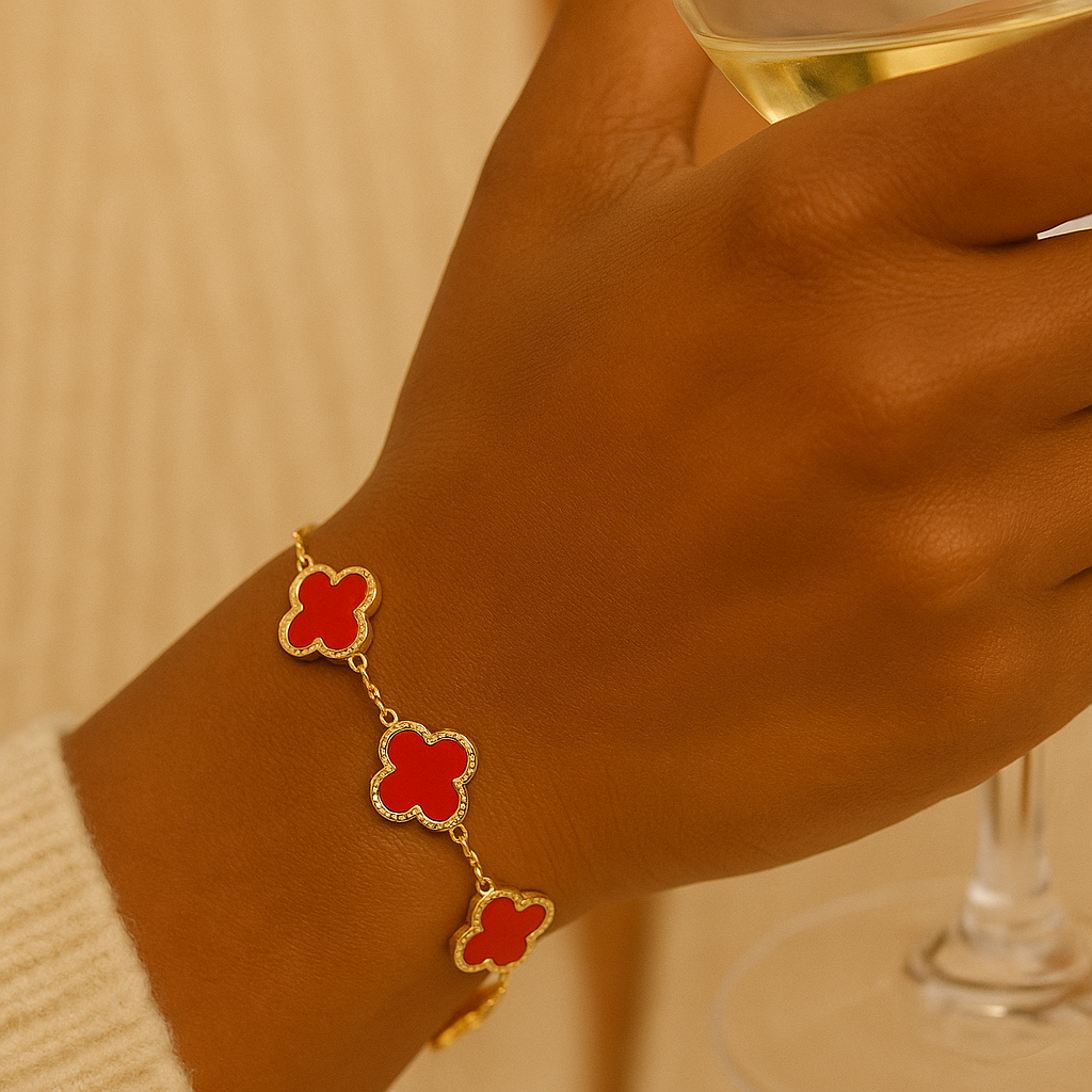 Bracelet trèfle à quatre feuilles en acier plaqué or 18 carats résistant à la transpiration.