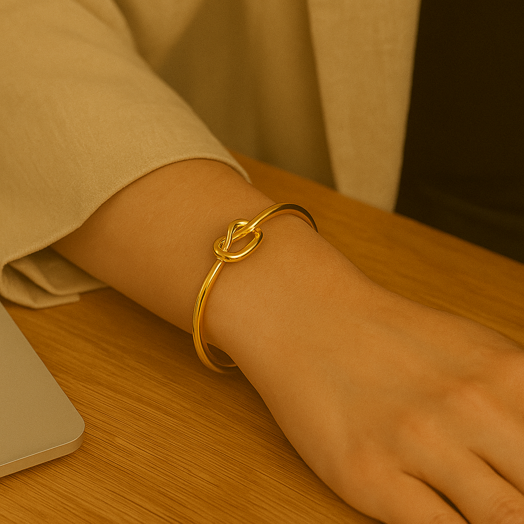 - Design: A modern take on the classic cuff with a central knot as the focal point.